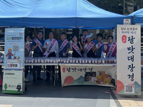 현장에서는 김천시에서 개설한 직거래장터 ‘김천팜앤장터(gcmall.cyso.co.kr/shop)’를 홍보하기 위해 스티커가 부착된 컵에 김천 자두를 담아 시민들에게 나눠주었고, 김천 대표 특화 음식 개발로 탄생한 ‘팔맛대장경’과 김천의 주요 관광지 등 다양한 시정 정보도 함께 홍보했다.