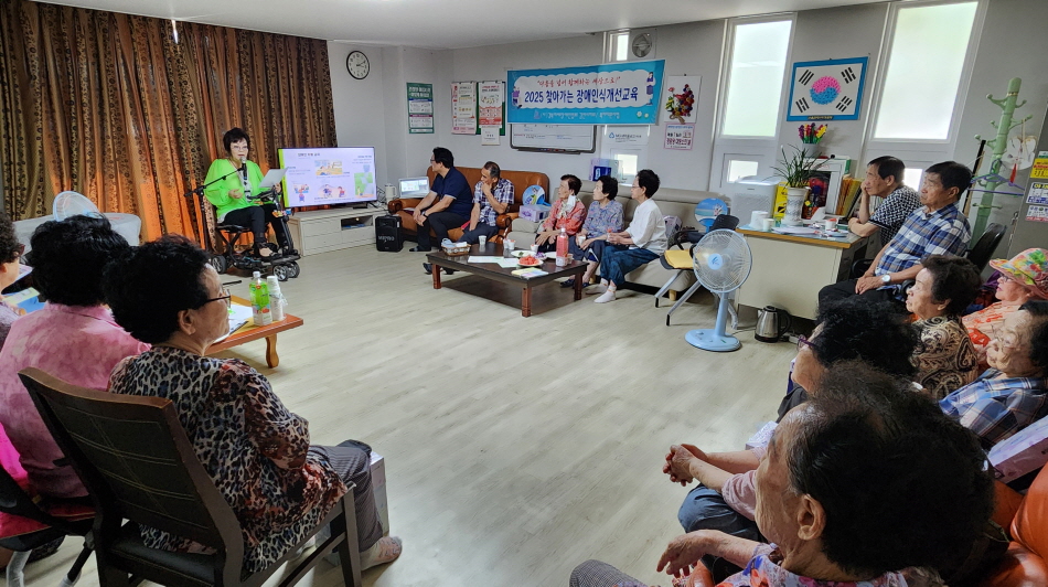 | (사)경북지체장애인협회 김천시지회(지회장 김길영)는 7월 4일 김천시 신음동 현대1차 아파트 경로당에서 지역 주민들 30여 명이 참여한 가운데 “찾아가는 장애인식개선교육 및 캠페인”을 진행하여 장애에 대한 올바른 인식과 사회적 공감 형성의 기회를 마련했다.