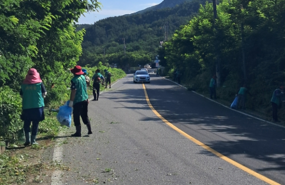 회원들은 이른 새벽부터 사전 안전교육을 마친 후 예초기 등을 동원해 도로 풀베기 작업을 실시하고, 도로변 일대에 방치된 폐비닐 등 쓰레기를 수거하며 단합된 모습을 보여주었다.