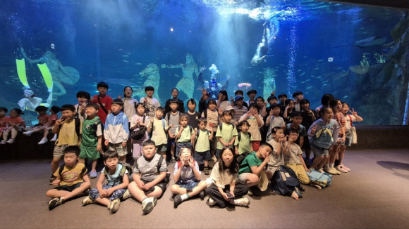 학생들은 오전에는 시원한 아쿠아리움에서 평소에 접하기 힘든 다양한 어종을 보며 호기심을 충족하고 비단잉어 먹이 주기 체험, 닥터 피쉬 체험 등 다양한 체험과 마술 공연, ‘미녀와 야수’ 수중 공연을 관람하는 등 알찬 시간을 보냈다.