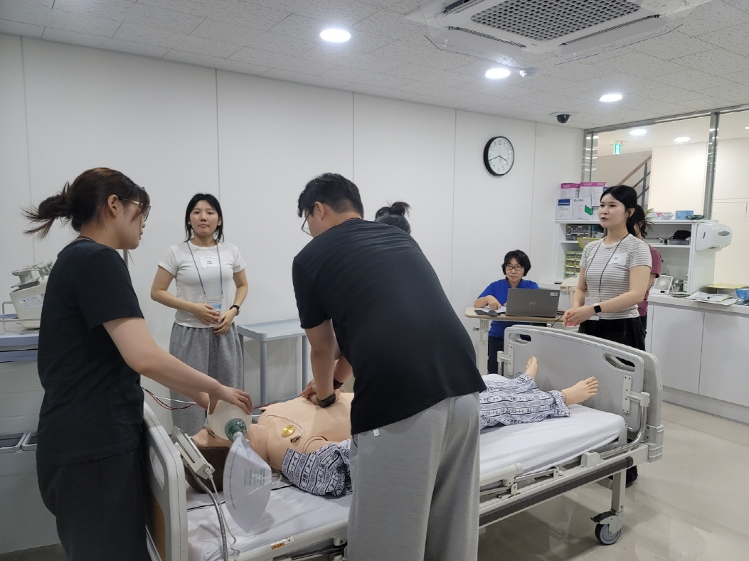 교육은 ▲1차 교육이 6월 24일, ▲2차는 6월 25일, ▲3차는 6월 26일, ▲4차는 6월 30일, ▲5차는 7월 1일에 각각 진행되었으며, 회차별로 소규모 그룹 단위로 구성하여 실습 집중도를 높였다. 총 60여 명의 간호학과 학생들이 본 과정에 참여해 전문 강사진의 지도 아래 시뮬레이션 중심 교육을 통해 실질적인 임상 대처 능력을 체득하였다.