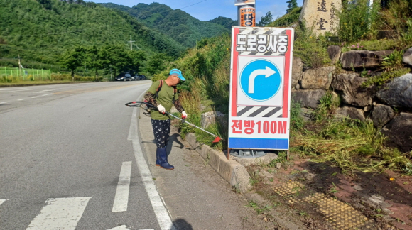 대원들은 부항터널부터 하대삼거리에 이르는 약 6km 도로변에서 칡넝쿨 및 잡목을 제거하며 도로 환경을 정비했다.