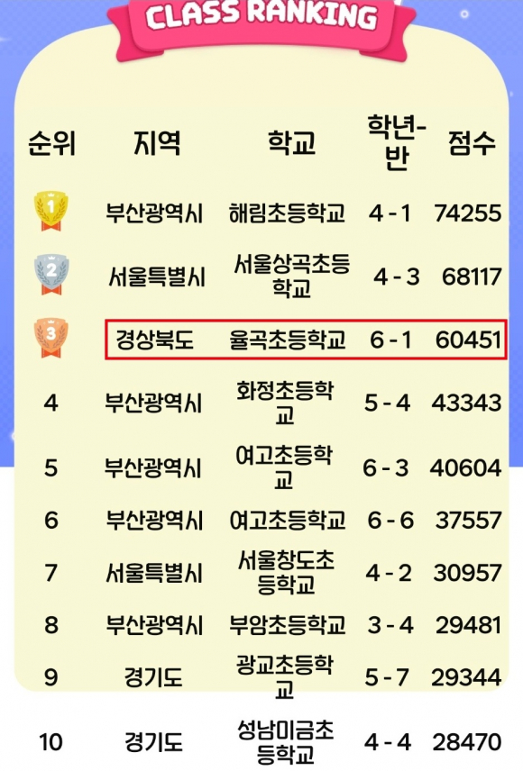 AI 펭톡 전국 마일리지 학급 대항전 전국 3위 달성