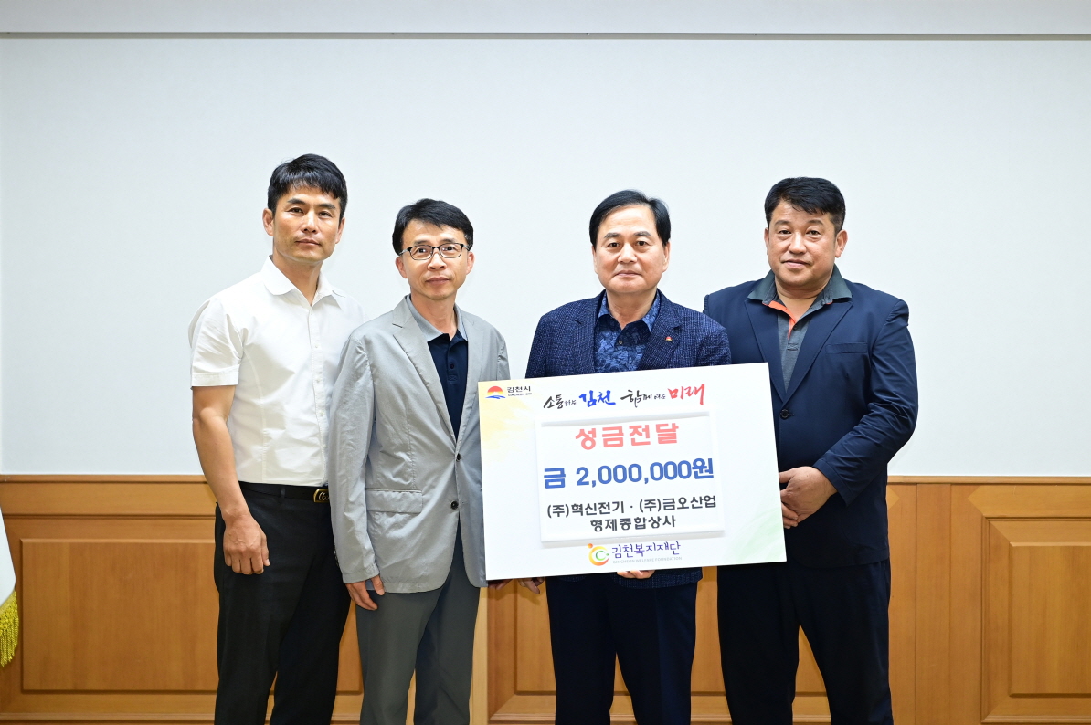 (주)혁신전기·(주)금오산업·형제종합상사, 김천복지재단에 성금 200만 원 전달