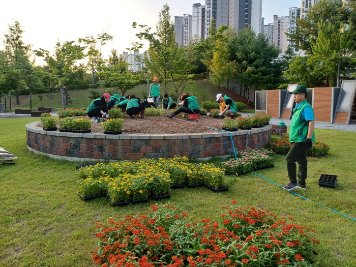 | 김천시 율곡동 새마을지도자(회장 이현수) 및 새마을부녀회(회장 김주미)는 지난 7월 11일 율곡동 행정복지센터 인근의 안산공원 입구 정원에 여름꽃을 식재하며 화단을 새롭게 정비했다.