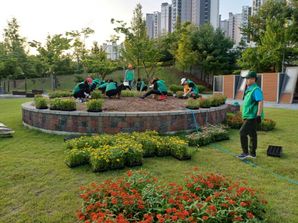 이날 오전 5시 30분 이른 시간부터 율곡동 새마을남녀지도자 20여 명은 형형색색의 백일홍 3,500본을 색상별로 구분하여 화단을 꾸미며, 주민들에게 볼거리를 제공함은 물론 쾌적한 주거환경을 조성하기 위해 구슬땀을 흘렸다.
