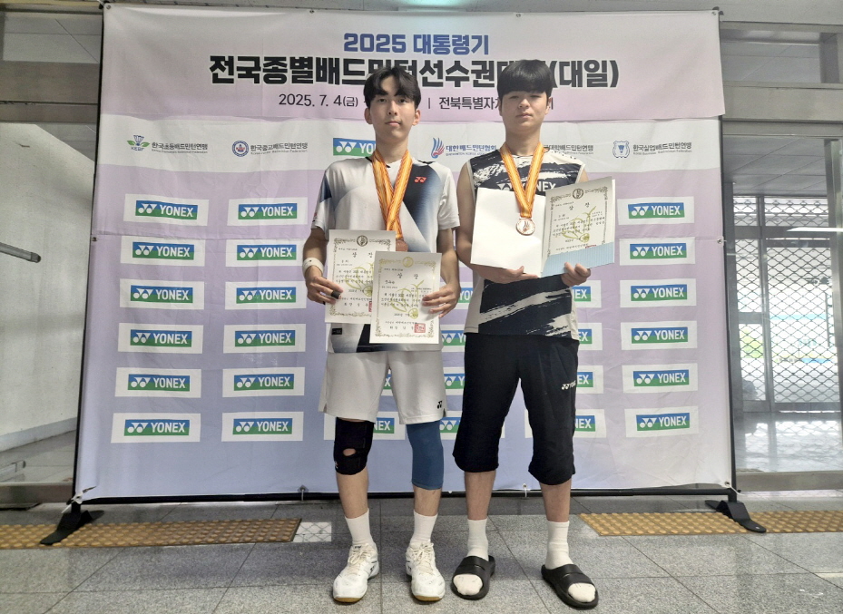 | 지난 7월 6일(일)~13일(일) 전북 익산실내체육관에서 대한배드민턴협회가 주최하는 2025 대통령기 전국종별배드민턴 선수권대회에서 김천대학교(총장 윤옥현) 배드민턴부(감독 김민호), 추찬 대학부 혼합복식 은메달과 추찬, 노경규 대학부 개인 복식 동메달 획득하였다고 14일 밝혔다.