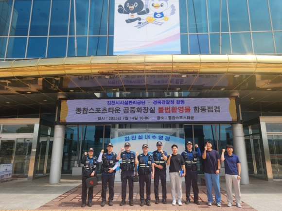 | 김천시시설관리공단(이사장 김재광)은 7월 14일, 경북경찰청 범죄예방대응과 기동순찰대와 함께 종합스포츠타운 내 공중화장실을 대상으로 불법촬영 예방을 위한 합동점검을 실시했다고 밝혔다.