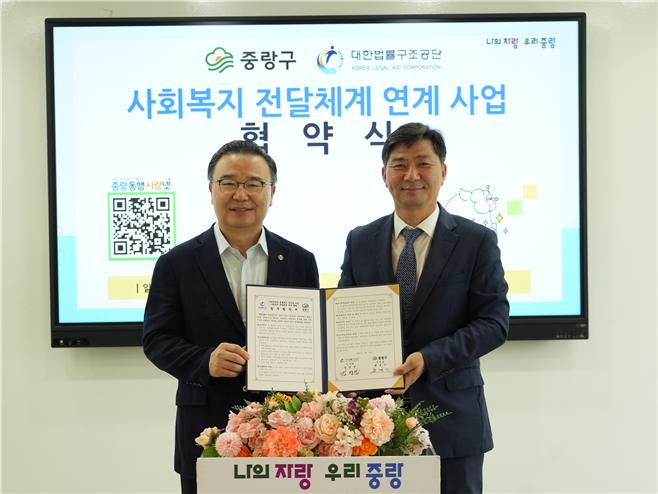 류경기 중랑구청장은 “이번 협약은 복지와 법률이 하나의 전달체계를 통해 주민을 지원하는 의미 있는 출발점”이라며 “법의 사각지대에 놓인 주민들이 지역 내에서 법적 보호를 받을 수 있도록 구가 적극적인 역할을 해나가겠다”라고 말했다.