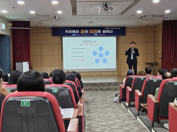 이번 강연은 법의학자로서 대한민국 현대사의 대형 참사 현장을 수습한 전북대학교 의과대학 이호 교수를 초빙하여 ‘죽음에서 삶의 희망을 배우다’라는 주제로 진행됐다.