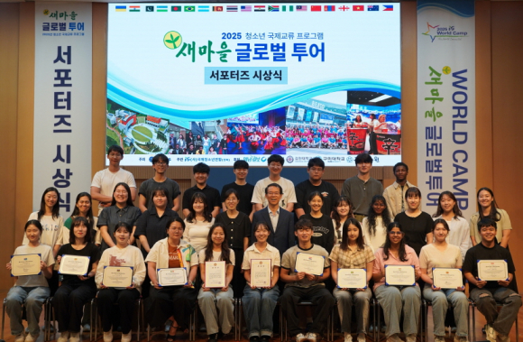 이번 행사는 외국인 120여명이 참여하였으며, 7월 10일(목)부터 2박 3일간 진행된 ‘2025 새마을 글로벌 투어’ 프로그램의 성과를 기념하고, 새마을 운동 및 한국 문화 홍보와 국내외 청소년 간 교류 활동에 적극적으로 기여한 서포터즈들 56명의 노고를 치하하고자 마련되었다.