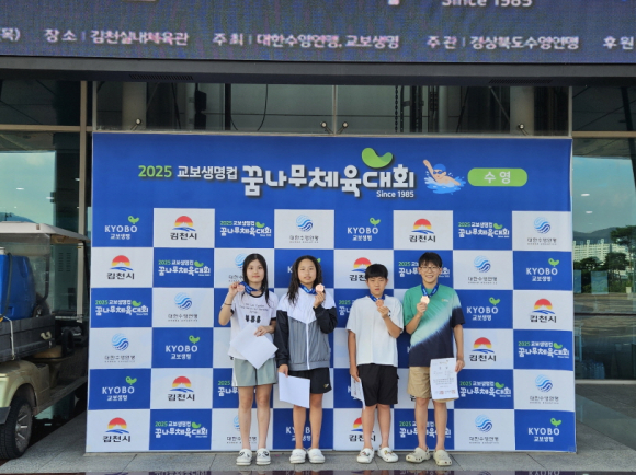 | 김천 운곡초등학교(교장 이경화) 수영부는 한여름의 무더위 속에서도 훈련에 매진하며 값진 결실을 맺었다. 지난 7월 29일부터 31일까지 열린 2025 교보생명컵 꿈나무 체육대회 수영경기 초등부 혼성혼계영 200m 종목 동메달을 획득한 것이다.