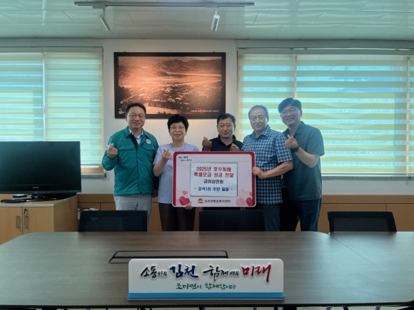 김영백 조마면장은 “이웃사랑 실천을 몸소 보여주신 조마면민들께 크게 감사드린다.”라며, “지역사회 발전을 위한 온정의 손길이 이재민들의 빠른 일상 복귀에 큰 힘이 되길 진심으로 응원한다.”라고 밝혔다.