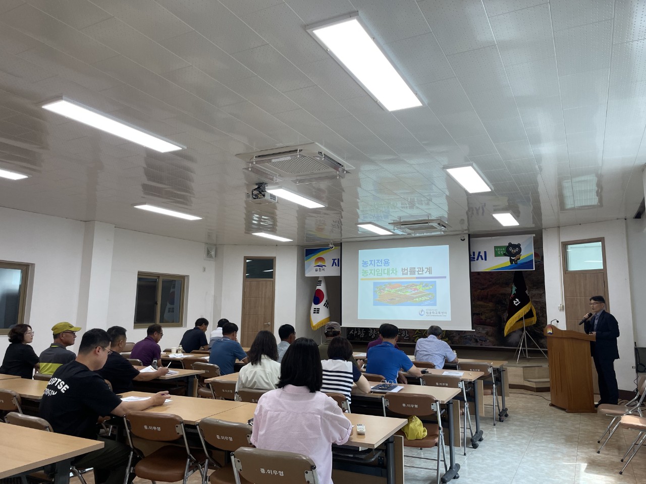 교육에는 증산면 이장을 비롯한 지역 주민 30여 명이 참여했으며, 한국법률구조공단 법문화센터의 김호규 팀장이 강의를 진행했다. 강의 내용은 농촌 지역의 특성에 맞춰 농지 전용 및 농지 임대차 관련 법률을 중심으로 구성됐다.