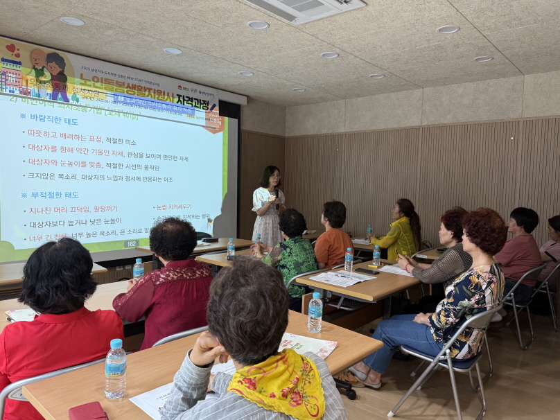 이번 교육은 고령화가 심화되고 있는 김천시 남산지구 내에서 만 40세 이상의 신중년 주민들을 대상으로, 복지 전문 자격과정 교육을 통해 지역 내 구인난을 해소하고 취업 기회를 확대하고자 마련되었다.