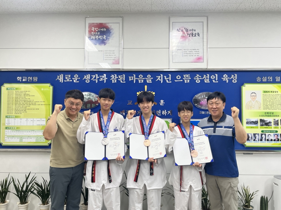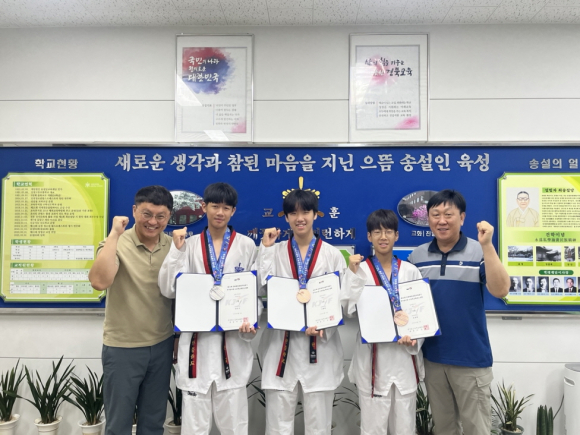끝으로 장영규 교장은 "이번 전국대회에서 우수한 성적을 거두어 매우 자랑스럽게 생각합니다. 동계 및 하계 강화훈련 기간 쉼 없이 지도와 관리 감독에 열정과 힘을 쏟아 준 감독과 운동부지도자께 감사의 말씀을 전합니다. 역사와 전통이 빛나는 본교 태권도부가 체계적인 시스템 속에서 더욱 성장하는 학생 선수가 되기를 응원합니다 .”고 전했다.