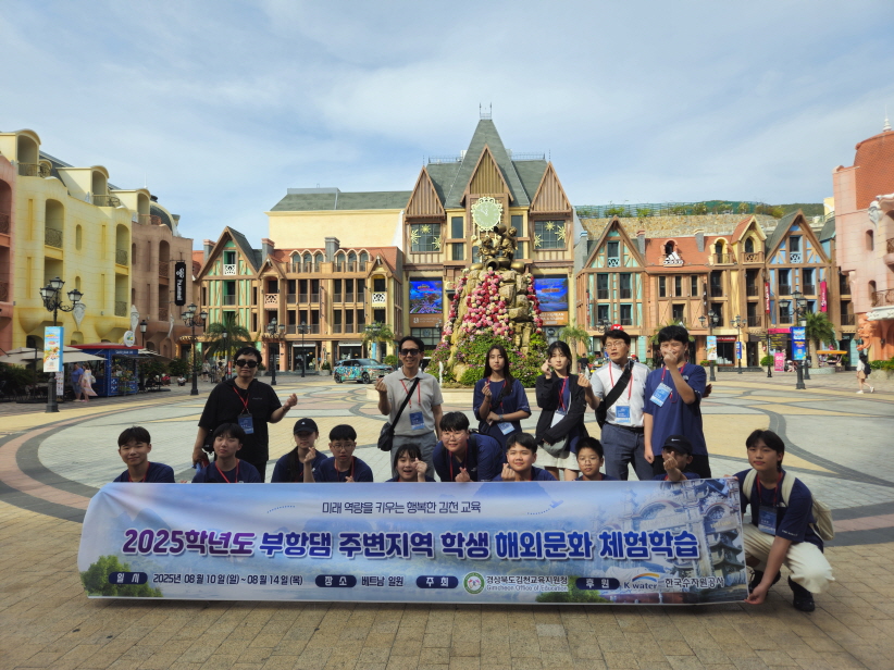 | 경상북도김천교육지원청(교육장 모태화)은 8월 10일부터 14일까지 3박5일간, 부항댐 인근 초·중학교 학생 13명을 대상으로 ‘2025 부항댐 주변지역학생 해외문화체험학습’을 실시한다. 이번 체험학습은 한국수자원공사 김천부항댐지사의 후원으로 진행되며, 방문지역은 베트남 달랏과 나트랑 일대이다.