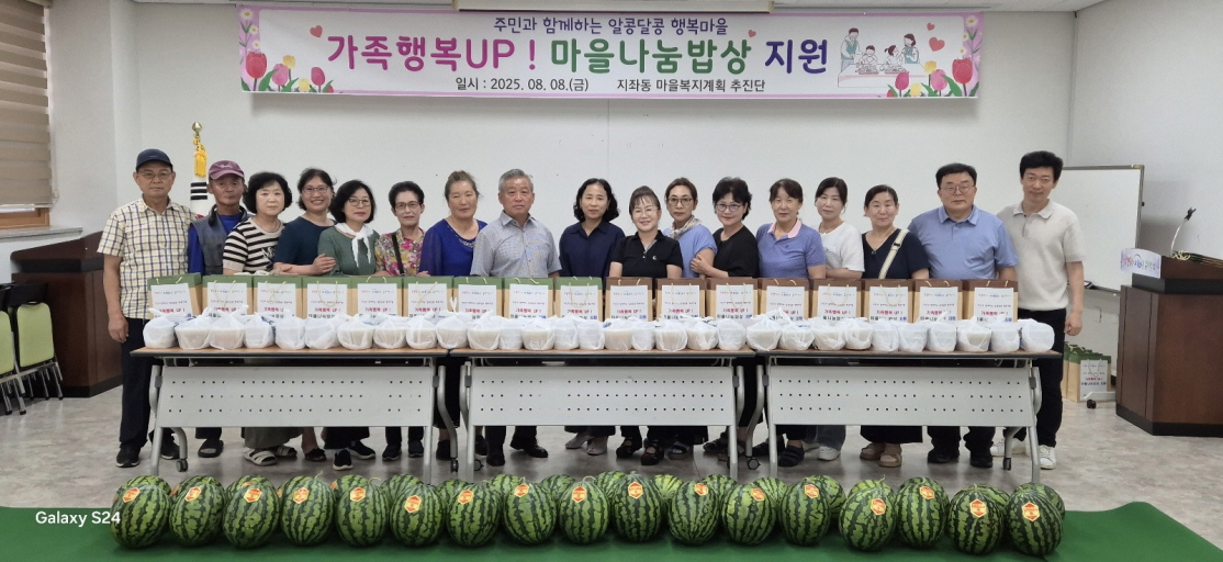 | 김천시 지좌동 2기 마을복지계획 추진단(위원장 김기옥)은 지난 8월 8일 지좌동 행정복지센터에서 관내 취약계층 세대 대상으로 2025년 「가족행복 UP ! 마을나눔밥상 사업」의 두 번째 사업을 펼쳤다.