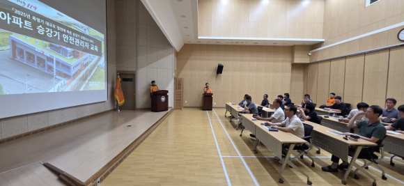 이론교육에서는 승강기의 구조 원리와 사고 발생 시 구조대응 절차 등을 중심으로 진행됐으며, 이어진 실습에서는 승강기 문 강제 개방, 권상기실 조작을 통한 인명 구출 등 실제 상황을 가정한 대응훈련이 이뤄졌다.