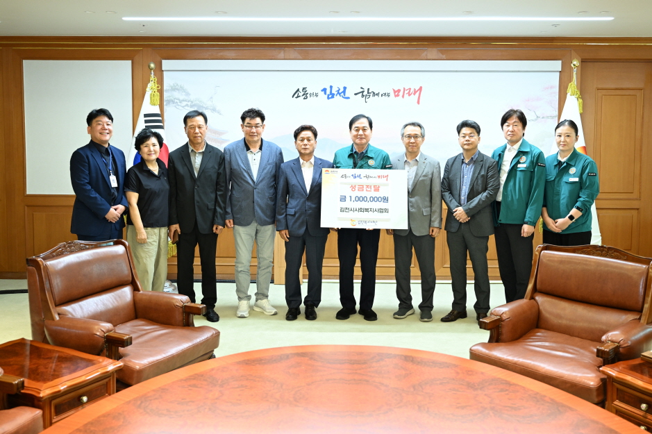 | 김천복지재단(이사장 배낙호)은 지난 8월 18일, 김천시사회복지사협회(회장 박준호)로부터 성금 100만 원을 전달받았다고 밝혔다. 김천시사회복지사협회는 사회복지사업의 발전과 사회복지사의 자질 향상·권익 증진을 도모함으로써 복지사회 건설에 이바지하고 있으며, 지역 복지 발전을 위한 프로그램 개발과 봉사 및 나눔 활동에도 앞장서고 있다.