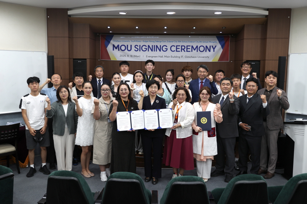 몽골 3개 고등학교와 협약 체결 몽골 에르데넷 시 소재 3개 고등학교가 참여했다. 협약교는 ▲BULGAN AIMAG SELENGE SUM(교장 ENKHBOLD KHISHIGSUREN), ▲ERDENET CITY 18TH SCHOOL(교장 NANJID NANSALMAA), ▲ERDENET CITY 8TH SCHOOL(교장 DORJPALAM TSENGEL)이며, 이번 협약을 통해 몽골 고등학생들의 김천대학교 진학을 적극 지원하고, 양국 간 교육 협력 방안을 심도 있게 논의했다.