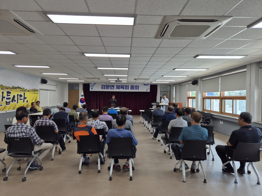 | 김천시 감문면 체육회(회장 송진호)는 지난 8월 20일 체육회 임원 35여 명이 참석한 가운데 감문면 행정복지센터 2층 회의실에서 임시 총회를 개최했다.