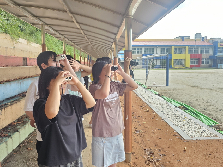 이번 활동에서 학생들은 ‘우리 학교에서 기후변화 생물지표종을 찾아라!’라는 주제로 기후변화와 생물다양성의 중요성을 이해하는 시간을 가졌다. 특히 조류를 중심으로 기후변화 생물지표종을 살펴보고, 학교 주변에서 탐조 활동을 체험하였다. 망원경 사용법을 익힌 뒤 직접 새들을 관찰하며 생태적 호기심을 키웠으며, 제비 키링 제작 활동을 통해 주변 생물에 대한 관심과 흥미도 높였다.