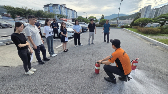 이번 훈련은 「공공기관의 소방안전관리에 관한 규정」 제14조에 따라 실시됐으며, 지좌동 자위소방대와 양금 119 안전센터 소방대원 등 15명이 참여한 가운데 합동으로 진행되었다.