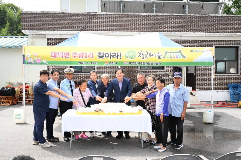 | 김천시(시장 배낙호)는 지난 9월 3일 대덕면 추량1리 마을회관에서 주민 및 자원봉사자 100여 명이 참석한 가운데 “찾아라! 김천 행복마을 25호” 현판식 및 다양한 체험행사를 개최했다.