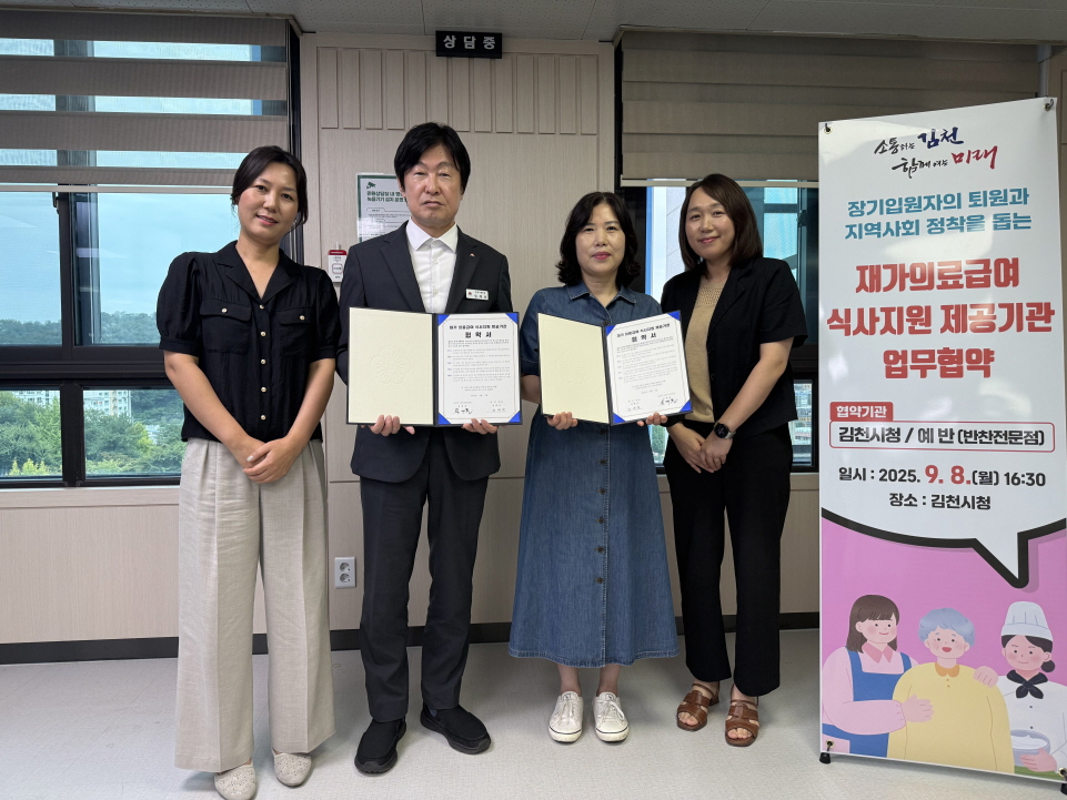 | 김천시(시장 배낙호)는 9월 8일 예반(반찬전문점)과 재가 의료급여사업 수행을 위한 업무협약을 체결했다.