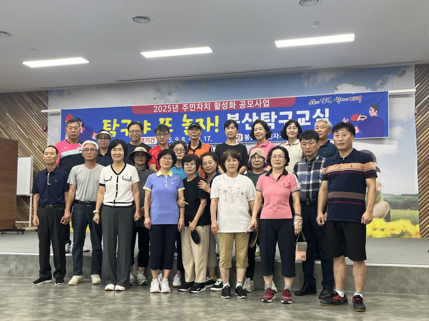 | 김천시 봉산면 주민자치위원회는 9월 8일 봉산면 건강생활지원센터 3층에서 봉산면민 20여 명이 참석한 가운데 『탁구야 또 놀자!』 봉산 탁구교실 개강식을 개최했다.
