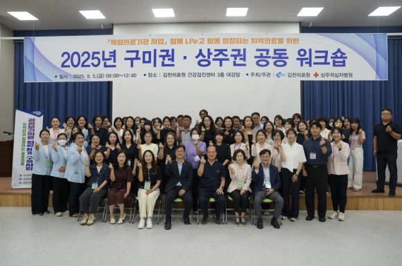 | 김천의료원(원장 정용구)은 지난 9월 5일 김천의료원 건강검진센터 대강당에서 「2025년 구미·상주권 공동 워크숍」을 개최했다. 이번 행사에는 경상북도 및 지역 유관기관 관계자 약 80여 명이 참석해 공공보건의료 협력체계 구축과 지역사회 통합돌봄 활성화를 주제로 다양한 사례와 전략을 공유했다.
