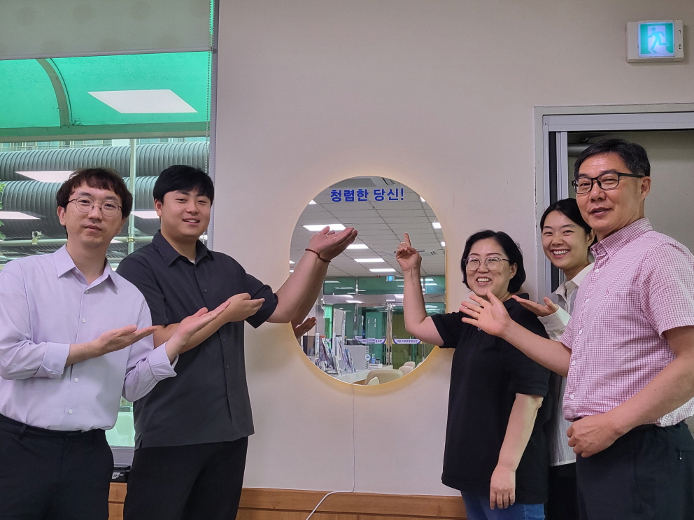 ‘청렴 거울'은 직원들을 비롯해 방문한 민원인들이 자주 오가는 주요 공간에 설치되었으며, 거울의 표면에는 청렴의 중요성을 강조하는 메시지가 적혀 있다.