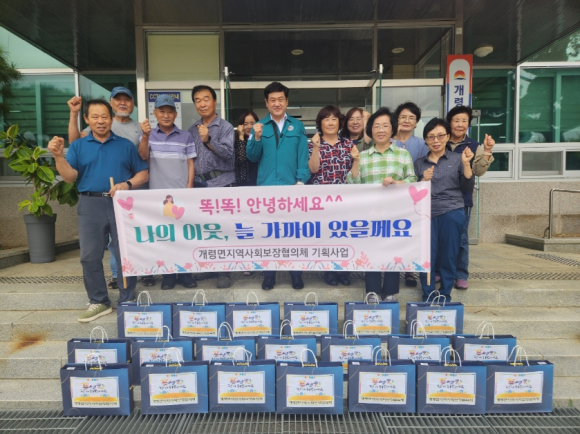 개령면 지역사회보장협의체가 기획 사업으로 실시하고 있는 『똑똑!! 안부사업』은 돌봄이 필요한 소외이웃과 협의체 위원 간 1대1로 결연을 맺어 안부를 묻고 위문 물품을 전달하는 등 찾아가는 서비스를 실천하는 이웃 돌봄 사업이다. 앞으로도 개령면 지역사회보장협의체는 지역 내 취약계층 이웃들에게 지속적으로 도움을 제공하고 봉사와 나눔 정신을 강화해 지원해 나갈 계획이다. |
