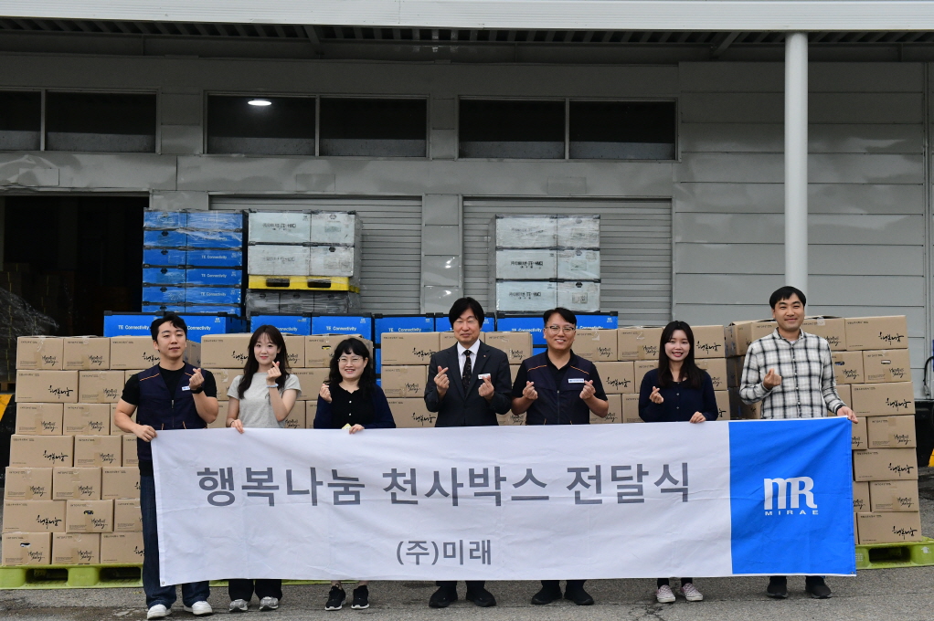 손욱헌 ㈜미래 대표는 “추석을 앞두고 소외된 이웃들이 풍성한 명절을 보낼 수 있기를 바라는 마음으로 직원들과 함께 정성을 모았다.”라며, “앞으로도 꾸준한 봉사와 나눔을 통해 사회적 책임을 다하고 지역 복지 발전에 이바지할 수 있도록 노력하겠다.”라고 말했다.