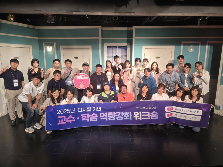 | 김천교육지원청(교육장 모태화)은 9월 18일부터 19일까지 1박 2일간 교직원 25명이 참여한 가운데 ‘2025 디지털 기반 교수‧학습 역량 강화 워크숍’을 성황리에 마쳤다. 이번 연수는 급변하는 교육환경 속에서 교원의 디지털 활용 능력과 미래교실 수업 역량을 높이기 위해 마련되었다. 워크숍 첫째 날에는 서울 코엑스에서 열린 「2025 에듀테크 코리아 페어」에 참석하여 최신 디지털 교육기술과 AI 기반 교수‧학습 도구를 체험하였다. 이어 미래교실 수업에 대한 교사들의 상상력을 확장하기 위해 마련된 연극 관람 프로그램을 통해 창의적 수업 운영에 대한 새로운 시각을 얻었다. 둘째 날에는 애플 코리아 본사를 방문하여 멀티패드를 활용한 과목별 디지털 AI 교수‧학습 연수를 진행하였다. 참가 교원들은 직접 실습을 통해 학생 맞춤형 수업 적용 방안을 탐색하였다. 이어 국립현대미술관 관람을 통해 디지털 기술과 문화예술을 융합한 미술 작품 감상을 통해 교육적 영감을 얻으며 연수를 마무리하였다.