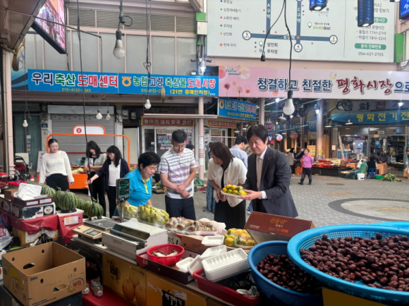 이날 장보기 활동에는 복지기획과 직원 12명이 참여해 시장 곳곳을 돌며 상인들과 소통하면서 애로사항을 청취하고, 응원의 메시지를 전달하는 등 따뜻한 명절 분위기 조성에 힘썼다. 특히, 온누리상품권과 김천사랑상품권을 활용해 제수 용품과 추석 선물을 구입하고, 인근 식당에서 점심을 함께하며 전통시장 활성화에도 실질적인 도움을 보탰다.