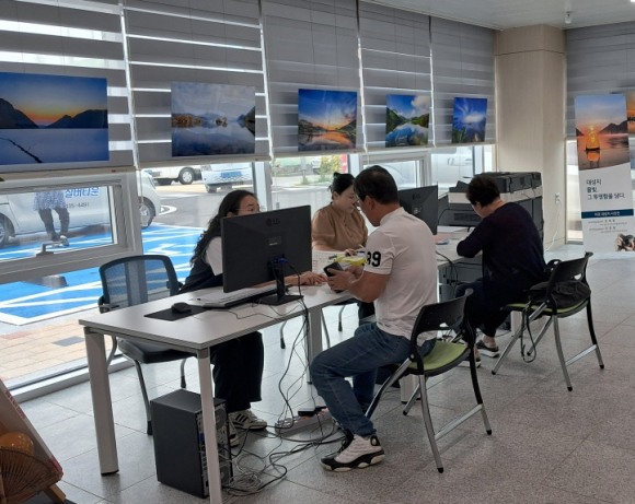 아포읍은 1차에 이어 2차 민생회복 소비쿠폰 신청을 위해 센터 1층 로비에 별도로 접수 창구를 마련하고 안내 배너 설치 및 관내 현수막 게첨 등 홍보를 위해 노력하고 있다.