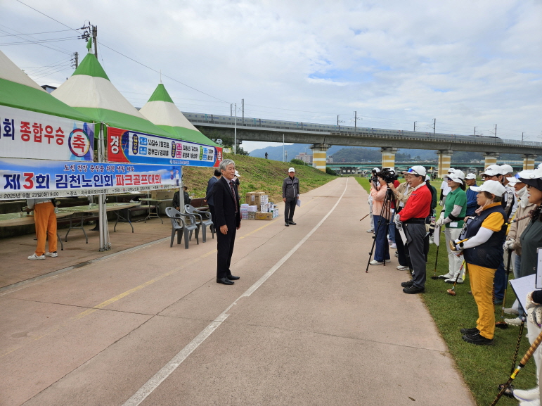 | 김천시는 대한노인회 김천시지회 주관으로 9월 23일, 파크골프 선수와 심판, 운영위원 60여 명이 참석한 가운데 김천파크골프장에서 『김천시 노인회 파크골프대회』를 개최했다.