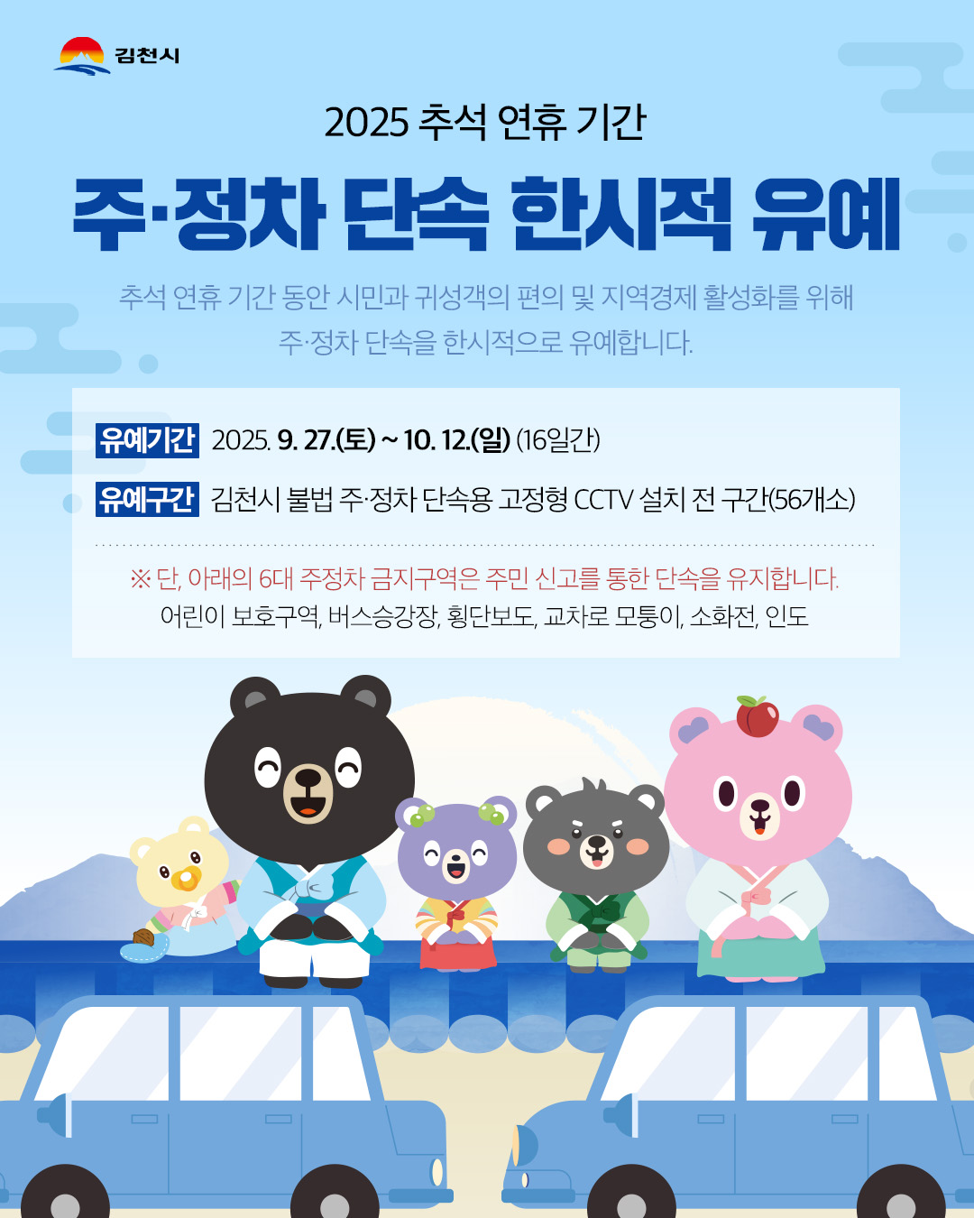 김천시 추석 명절맞이 주정차 단속 한시적 유예