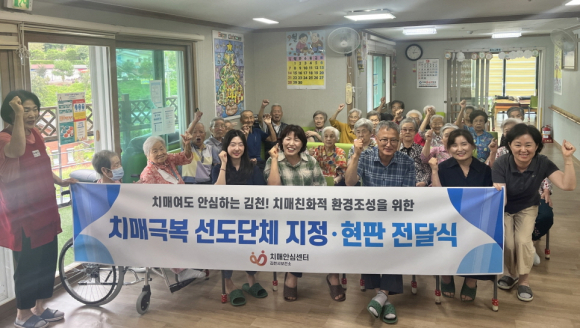 | 김천시치매안심센터는 9월 치매 극복의 달을 맞아 치매 친화적 환경 조성 및 민·관 협력형 치매 통합 관리 체계 구축을 위해 치매 극복 선도단체 1곳을 추가 지정하고 현판전달식을 진행했다.