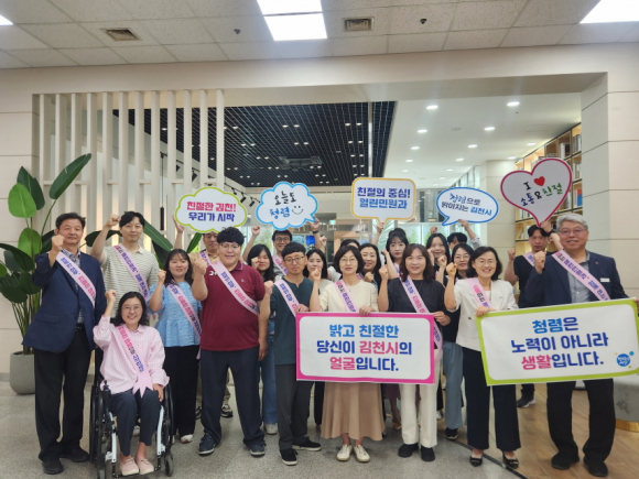 열린민원과에서는 ‘밝고 친절한 당신이 김천시의 얼굴입니다!’와 ‘친절한 김천! 우리가 시작’이라는 슬로건 아래 매월 넷째 주 수요일 정기적으로 친절·청렴 실천 교육 및 캠페인을 진행하고 있으며, 이를 통해 민원 응대 친절 교육, 인사 표현 제창, 민원 응대 기법 등을 공유하며, 환한 미소와 따뜻한 응대로 시민들에게 다가가는 친절한 종합민원실의 분위기를 조성하고 있다.