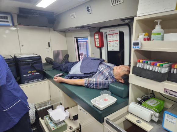 | 김천시시설관리공단(이사장 김재광)은 지역사회 생명 나눔 실천의 일환으로, 지난 9월 23일 김천시청에 마련된 헌혈버스에서 임직원 단체헌혈을 실시했다고 밝혔다. 공단은 따뜻한 나눔의 정신을 실천하고 지역사회 내 생명 나눔 문화 확산에 기여하기 위해 매년 정기적으로 단체헌혈을 실시하여 혈액 수급 안정화에 힘을 보탰다.