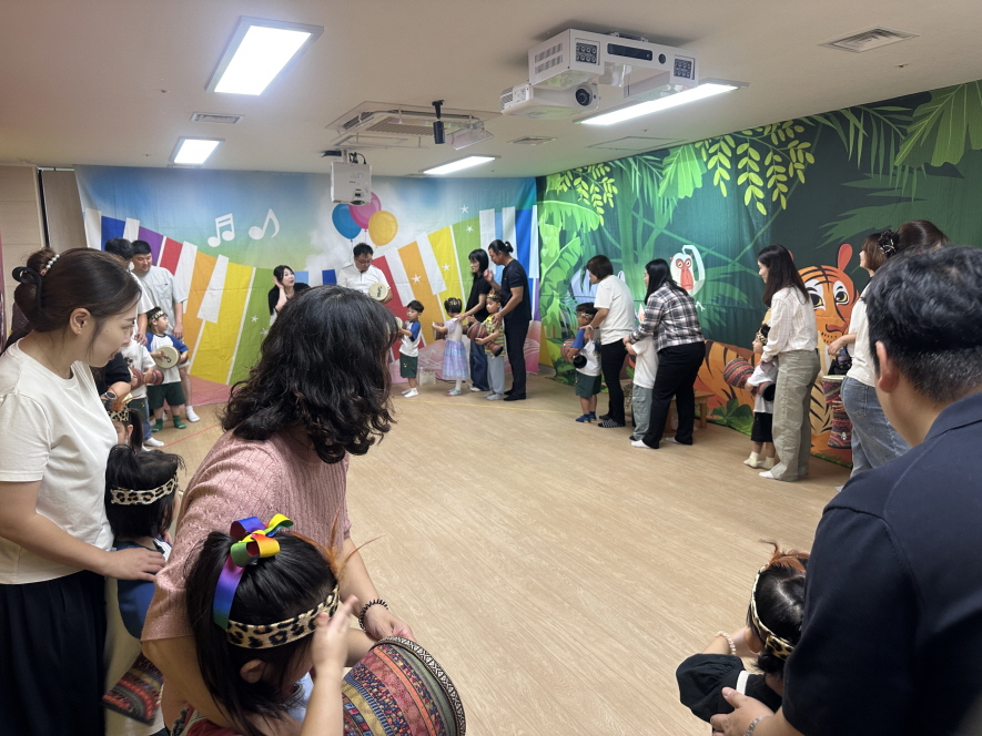 보호자들은 먼저 강당에서 보호자 특강으로 마련된 ‘율곡유치원, 함께 일구어 온 이야기’를 통해 유아의 성장 발달에 따른 유·초이음 교육의 내용과 성과에 대한 설명을 들었다. 강의에 이어 보호자들은 각 수업 장소로 이동하여 유아들과 함께 수업에 참여하였다. 신체활동실에서는 코앤코 음악을 들으며 춤을 추고, 젬베를 연주하였다. 교실에서는 예절 수업을 통해 부모님과 차를 마시고, 절하는 방법을 배웠다. 바깥놀이터에 마련된 율곡놀이동산에서는 범퍼카, 바이킹, 에어바운스 등 놀이기구를 타며 모두 함께 즐거운 시간을 보냈다.