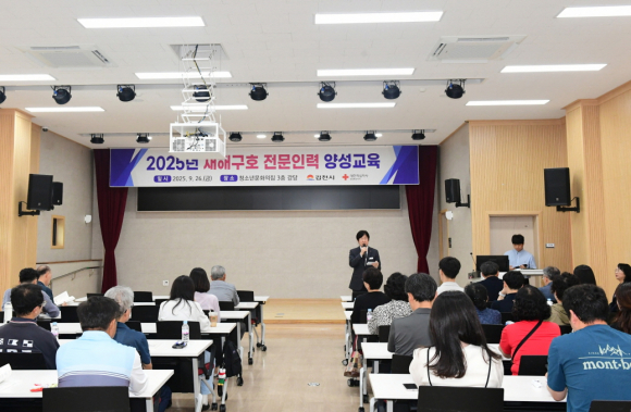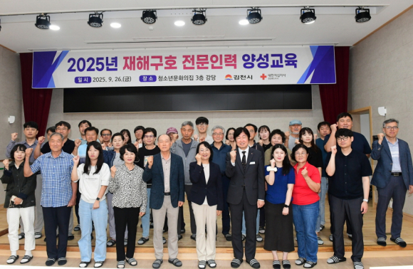 | 김천시(시장 배낙호)는 지난 9월 26일 각종 재난 발생 시 신속하고 체계적인 구호 활동을 지원하기 위해 「2025년 재해구호 전문인력 양성교육」을 청소년문화의집 3층 강당에서 실시했다.
