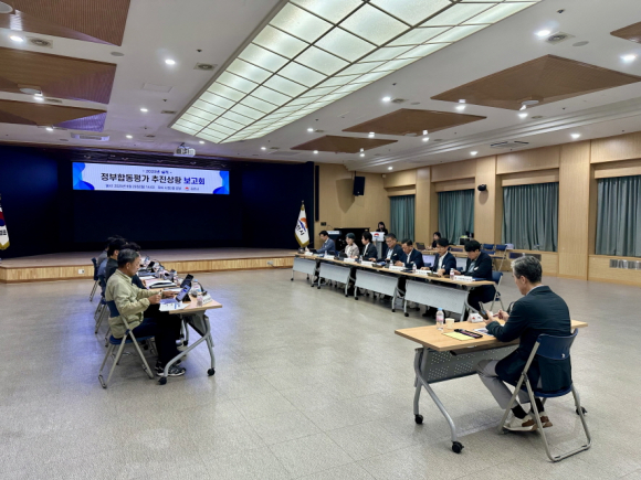 | 김천시(시장 배낙호)는 9월 29일 시청 3층 강당에서 최순고 부시장 주재로 정량지표 담당 부서장 16명이 참석한 가운데 ‘2025년 정부합동평가(시군평가) 추진상황 보고회’를 개최했다. 정부합동평가(시군평가)는 경상북도가 매년 22개 시군을 대상으로 국가위임사무, 국가 주요정책과 도정 역점시책의 성과를 종합적으로 평가하는 제도이다. 이날 보고회는 9월 중순까지의 추진 실적을 바탕으로 각 지표의 문제점과 부진 원인을 심도 있게 분석하고, 향후 대응 방안을 모색하고자 마련되었다. 특히 시부 5위 이하 및 목표 달성률 95% 이하인 지표들을 중점적으로 다루며, 전월 대비 실적 향상 현황과 상위권 진입을 위한 구체적인 실적 제고 방안을 논의하는 데 주력했다.