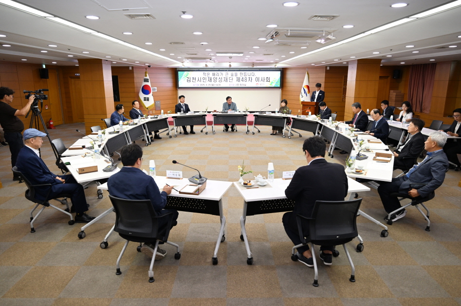 | 김천시인재양성재단(이사장 배낙호)은 지난 9월 29일 시청 2층 회의실에서 김천시인재양성재단 제48차 이사회를 개최하고 재단 발전 방안을 논의했다.