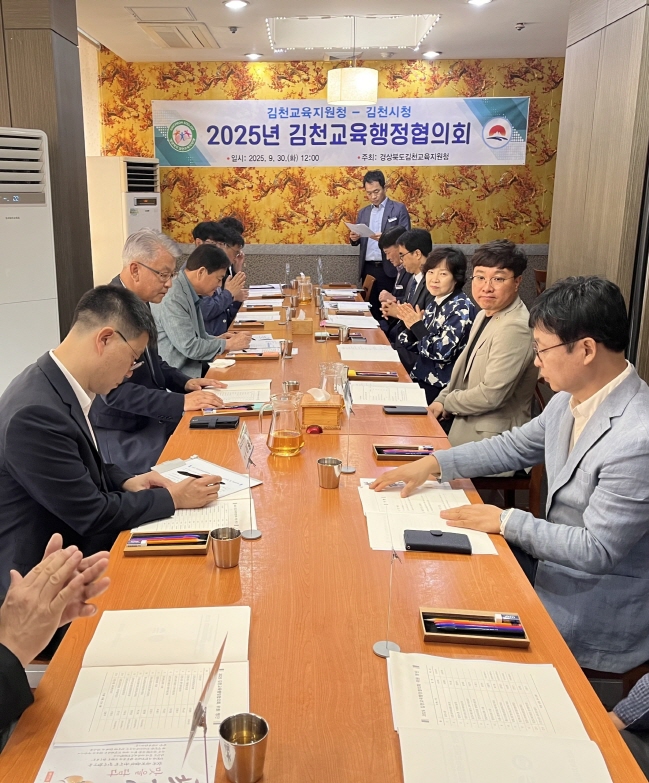 | 경상북도김천교육지원청(교육장 모태화)과 김천시청(시장 배낙호)은 9월 30일 김천교육 발전 방안을 모색하고 지역 교육 현안에 대한 공동 해결을 위한 2025년 김천교육행정협의회 정기회를 개최하였다.