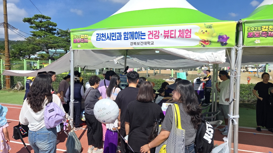 | 경북보건대학교(총장 이은직)는 9월 26일부터 28일까지 열린 ‘김천포도축제’에 참여해 체험형 홍보부스를 운영하며 지역민과 소통하고 대학의 특성화 교육 성과를 알렸다고 30일 밝혔다.