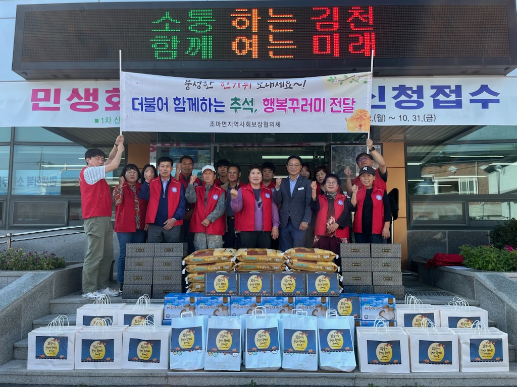 | 김천시 조마면 지역사회보장협의체(위원장 심해선)가 10월 1일, 추석을 맞이하여 관내 사각지대 30가구를 대상으로 직접 위문 꾸러미를 전달하며 따뜻한 마음을 전달했다.